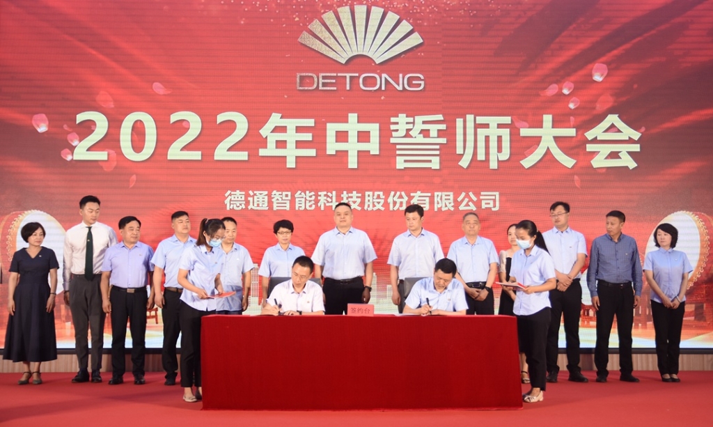 8月1日上午,德通智能科技股份有限公司隆重舉行2022年中誓師大會,公司董監(jiān)高全體領導出席大會,萬里交科智能制造產(chǎn)業(yè)園領導列席會議見證經(jīng)營目標簽約。
