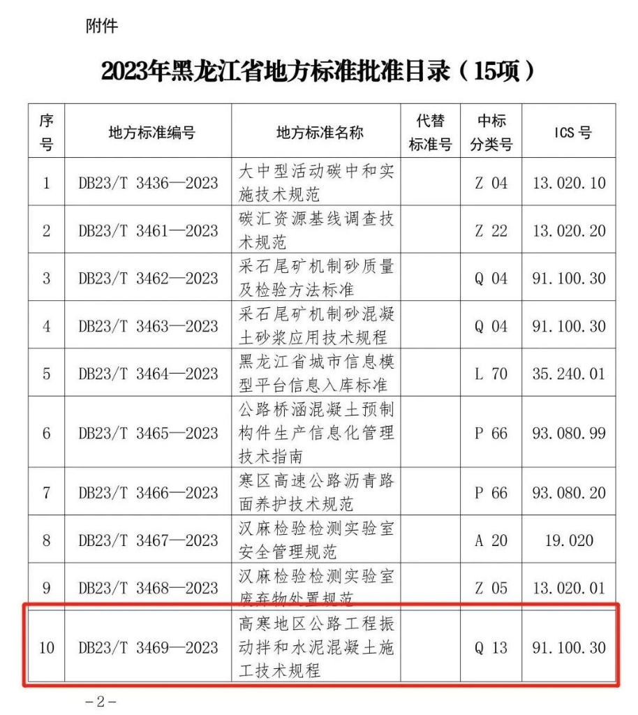 近日,黑龍江省市場監(jiān)督管理局發(fā)布了關(guān)于批準(zhǔn)《大中型活動碳中和實施技術(shù)規(guī)范》等15項地方標(biāo)準(zhǔn)的公告,《高寒地區(qū)公路工程振動拌和水泥混凝土施工技術(shù)規(guī)程》獲批頒布。